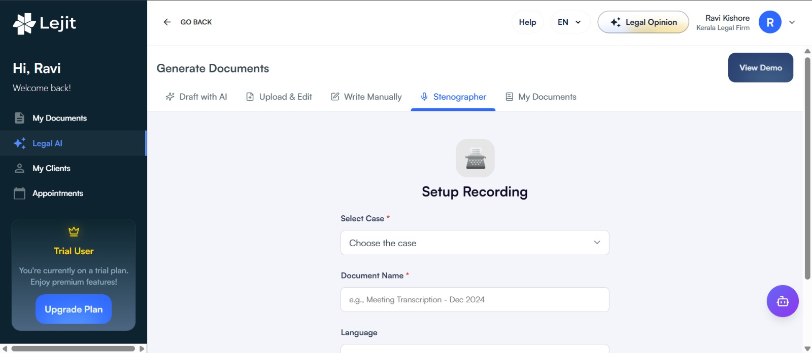 Lejit is the only piece of software lawyers, law students, corporate legal and litigants need for legal management. We offer a legal app with an automated legal data integration hub, legal knowledge graph, data models and recommendation engine to offer legal answers, automated drafting, manage case documentations, automate case updates and communications.